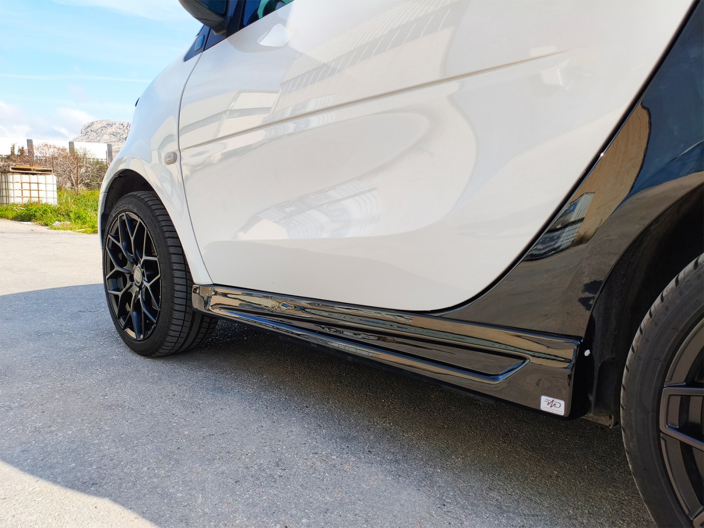 Τα Μαρσπιέ για το Smart 453 κατασκευάζονται από ABS Πλαστικό υψηλής ποιότητας και αισθητικής σε μηχανές θερμοδιαμόρφωσης τελευταίας τεχνολογίας, έχοντας άψογη εφαρμογή και εύκολη τοποθέτηση. Το υλικό πλαστικού που χρησιμοποιείται για την δημιουργία προϊόντων έρχεται σε Μαύρο Γυαλιστερό χρώμα και με αντιχαρακτική επιφάνεια. Συνοδεύεται από προστατευτική μεμβράνη όπου αφαιρείται πριν την τοποθέτηση.